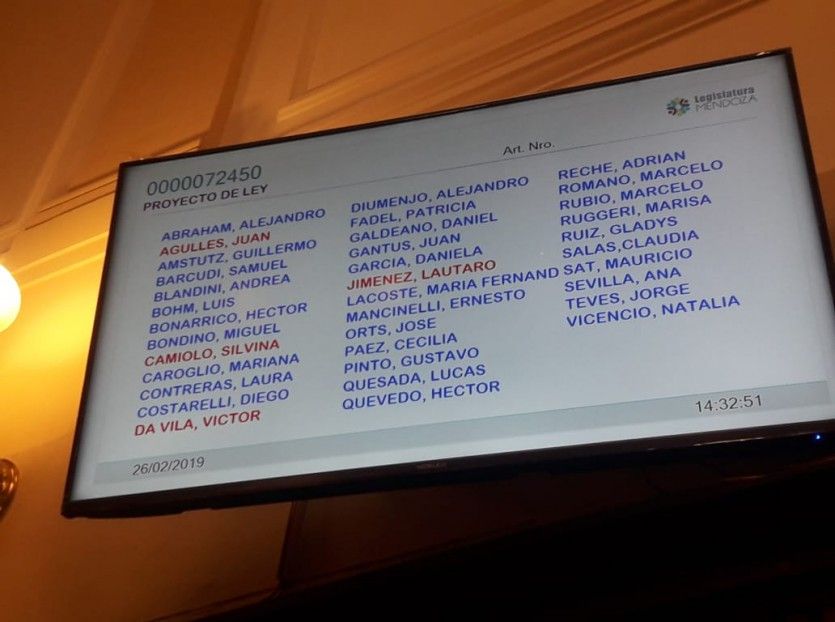La votación resultó con 32 votos a favor y 4 negativos. Los legisladores Juan Agulles, Lautaro Jiménez, Silvina Camiolo y Víctor da Vila votaron en contra de la iniciativa.