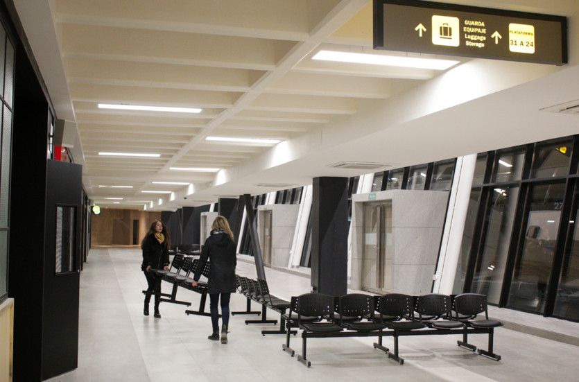 La gran novedad, que da aires de aeropuerto, es la sala de embarque, a la que se accede desde Reconquista y también brindará a pasajeras y pasajeros, todos los servicios necesarios mientras aguarda su viaje.