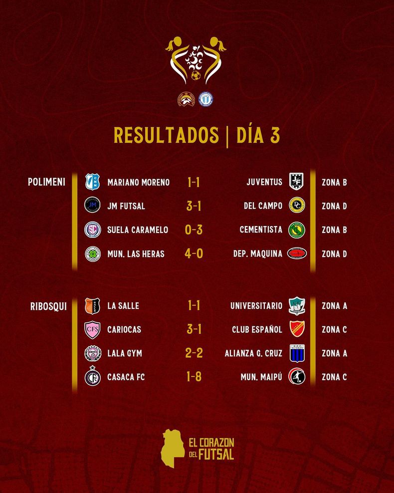 Estos fueron todos los resultados de la segunda jornada de la DDHF 2023 de futsal en Mendoza:
