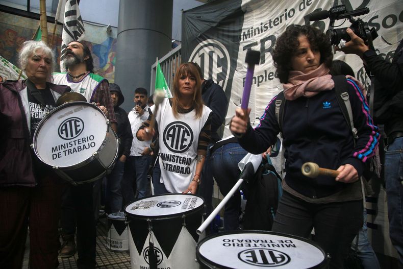 Protesta de ATE por los despidos en el Estado frente a la secretaria de trabajo, 3 de abril. Foto NA MARIANO SANCHEZ