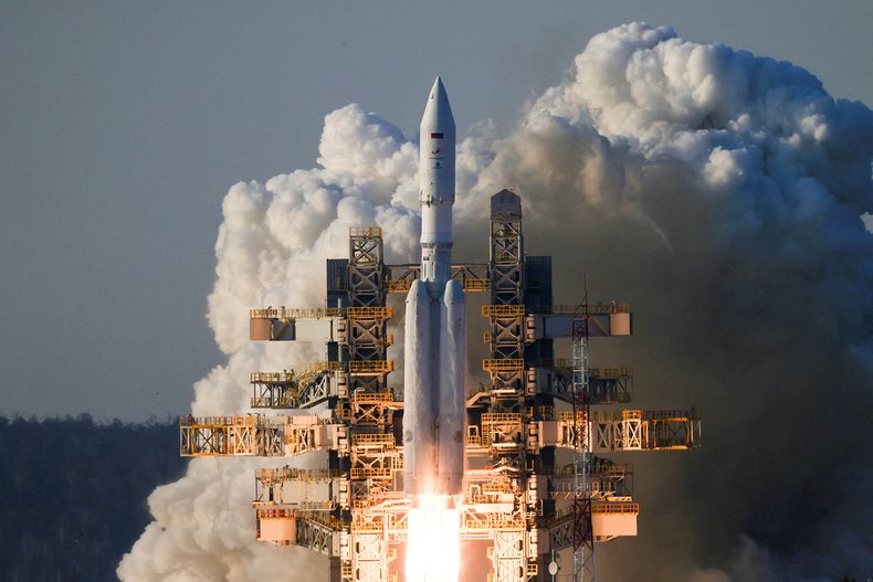 El cohete Angara-A5 despega desde su plataforma de lanzamiento en el cosmódromo de Vostochny en la región del extremo oriental de Amur, Rusia, el 11 de abril de 2024. RoscosmosIvan Timoshenko Handout Foto NA - REUTERS