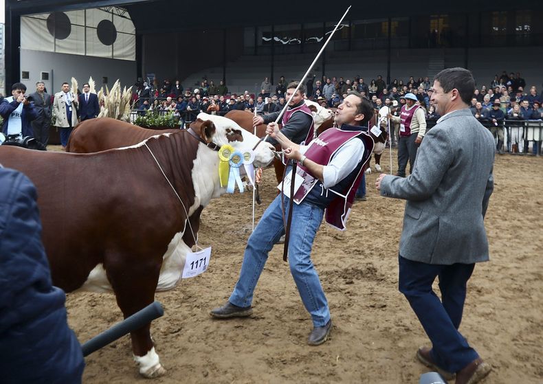 BUENOS AIRES, JULIO 22, En la Exposición Rural 2024, la Canciller Diana Mondino junto a sus pares de Paraguay y Uruguay, participó de las premiaciones de ejemplares Braford y Brahman, razas de exportación argentina. Foto: NA