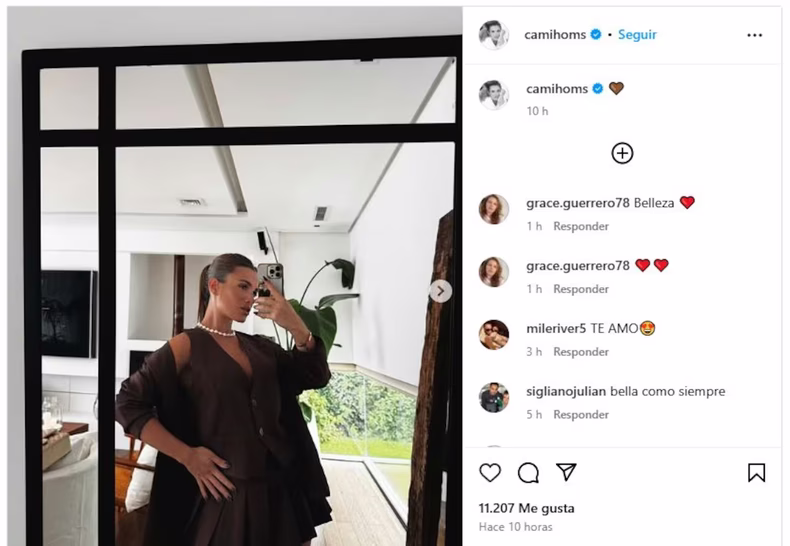 La modelo compartió en Instagram una serie de fotos donde luce un conjunto sastrero marrón, acompañado de un emoji de corazón del mismo color. El posteo generó comentarios sobre Rodrigo, e incluso algunos usuarios defendieron su actual relación con José Sosa.
