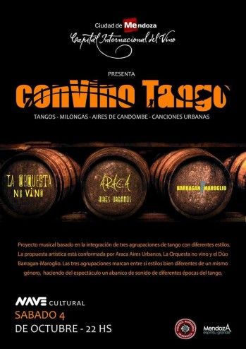 Tres de esas bandas se juntan este sábado para realizar en la Nave Cultural el concierto ConVino Tango. Bien distintas en sus propuestas, Araca Aires Urbanos, La Orquesta No Vino y el Dúo Barargán Maroglio se reunirán para darle forma a un espectáculo en el que compartirán repertorios y en el que además, agasajarán al público con una atractiva degustación de vinos.