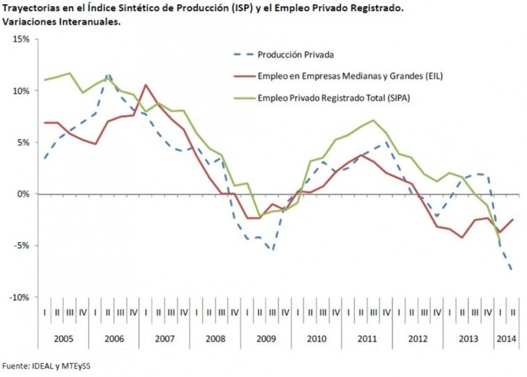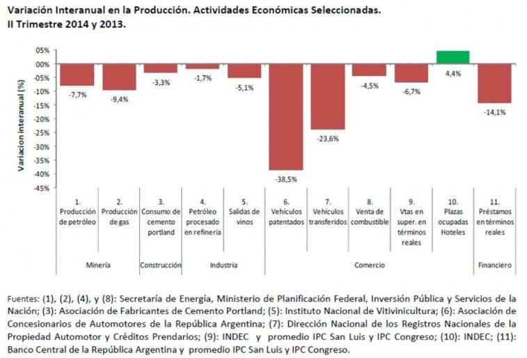 El nivel de actividad de la economía de Mendoza se derrumba. Con datos al segundo trimestre de 2014, el Índice Sintético de Producción (ISP) de Mendoza, que elabora la Fundación Ideal, se contrajo un 7,6% respecto a igual período del año anterior.