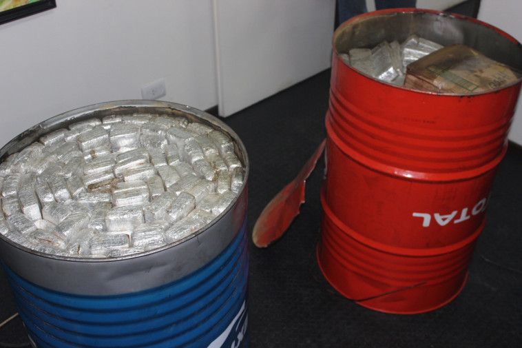 En los dos tambores secuestrados se hallaron más de 300 kilos de marihuana que estaba compactada en 622 ladrillos.