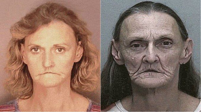 Las imágenes son devastadoras. Se ve como en pocos años, en algunos casos en menos de uno, los rostros de los adictos se desfiguran completamente con manchas, arrugas y deformaciones que producen los efectos de la droga.