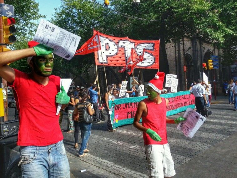La consigna central de la manifestación, que se desarrolló en la esquina de Colón y San Martín, fue por una Navidad sin familias en la calle (algunos de los participantes se disfrazaron de El Grinch y repartieron folletos).