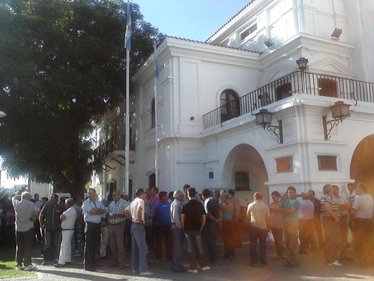 Los viñateros presentes en la manifestación frente al edificio comunal de San Martín buscaban un compromiso por parte del intendente Giménez para que se avance en la iniciativa de que a los productores se les pague un peso por kilo de uva en cepa.