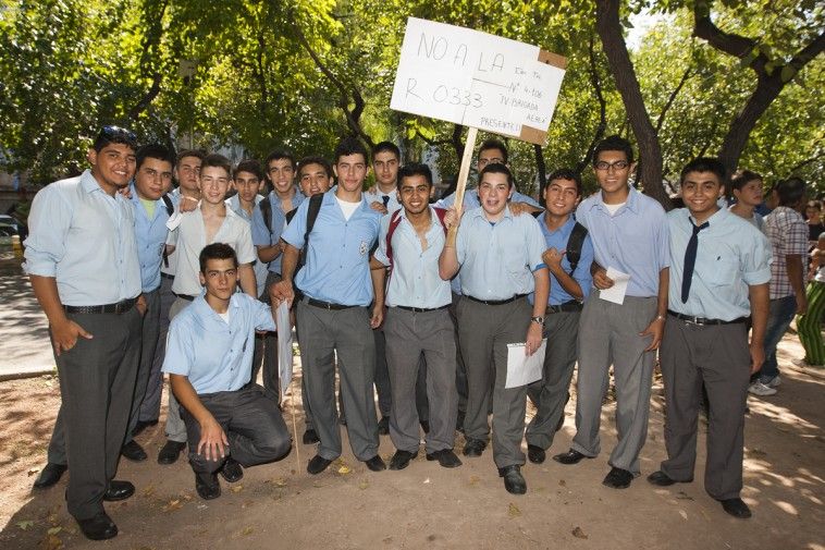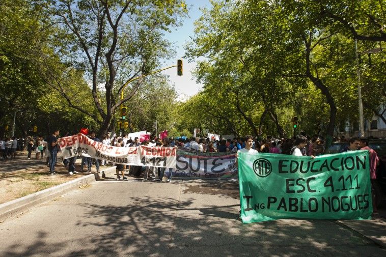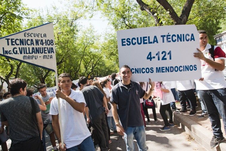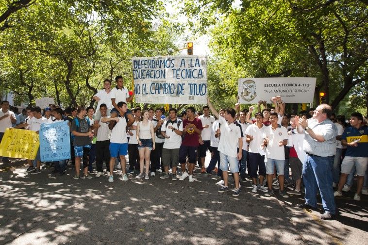 Por medio de un piquete en la calle Peltier, frente a la Casa de Gobierno, docentes y alumnos de las escuelas técnicas reclamaron este miércoles por la mañana la derogación de la resolución 333 que implementa cambios en la currícula de 2015.