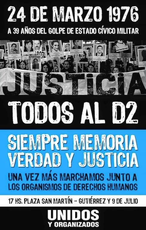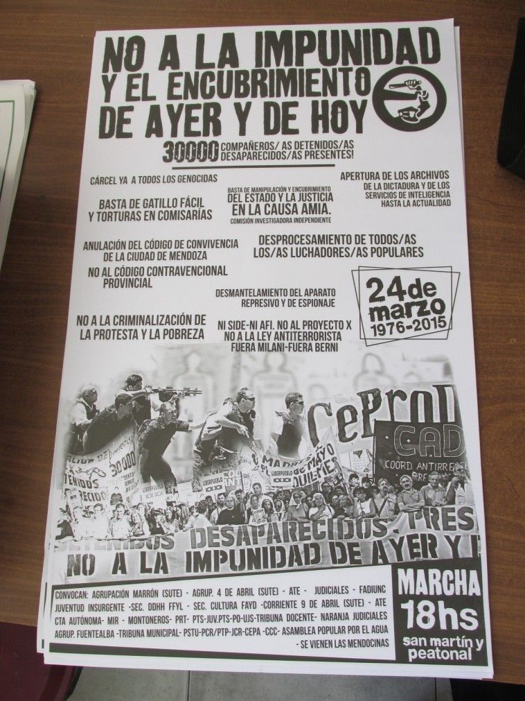 Los derechos humanos no son solamente DDHH de la memoria por los que estuvimos detenidos, los que fuimos perseguidos, los que tenemos familiares y compañeros militantes desaparecidos. Está referido también a los aspectos que hoy estamos viviendo en lo social, sostuvo Guillermo Martínez Agüero, secretario general de la CTA disidente de Mendoza. "NO a la impunidad y al encubrimiento de ayer (la dictadura) y de hoy (todos los gobiernos democráticos que tienen responsabilidad en los derechos humanos), será la consigna.