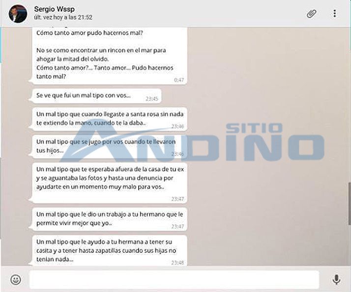 Bárbara Dorcemaine, la ex pareja del intendente de Santa Rosa, Sergio Salgado, ampliará la denuncia por violencia de género contra el mandatario debido a una serie de mensajes amenazadores que este le envió a su celular.