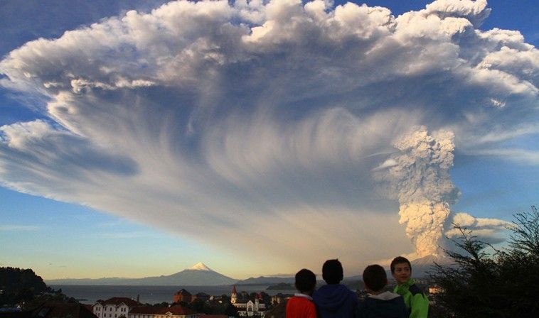 La erupción del volcán Calbuco en el sur de Chile tiñó el cielo de rojo. Y ese fondo del color del fuego se vio iluminado de a ratos por múltiples rayos.