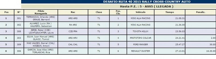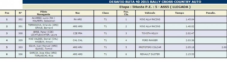 Fue un rally muy productivo para los mendocinos de MINI hoy con un tiempo 1h45m04s Álvarez ganó el día y a una diferencia de 3'02'' arribó Terranova. Tercero llegó el checo Jerie a una diferencia de 17'43''.