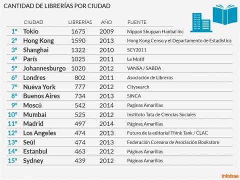 El último estudio realizado por el Foro Mundial de Ciudades Culturales ubica a Buenos Aires como uno de los sitios con más librerías en sus calles y la posiciona por encima de ciudades como Berlín, Ámsterdam, Londres, Los Ángeles, Madrid, Moscú, New York, entre otras.