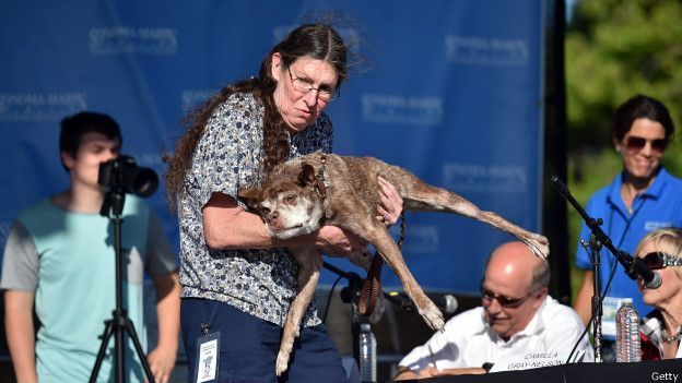 Quasi Modo recibió su premio. Además de la medalla y el trofeo, el dueño del perro recibe US$1.500. Esta perra fue abandonada en un refugio cuando era un cachorro y adoptada por un veterinario.