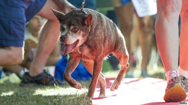 La ganadora del concurso de este año, celebrado el pasado fin de semana, es Quasi Modo (foto), una perra de 10 años, nacida con un defecto en la espina dorsal a quien, según explicaron en su biografía, "a menudo confunden con un diablo de Tasmania o una hiena".