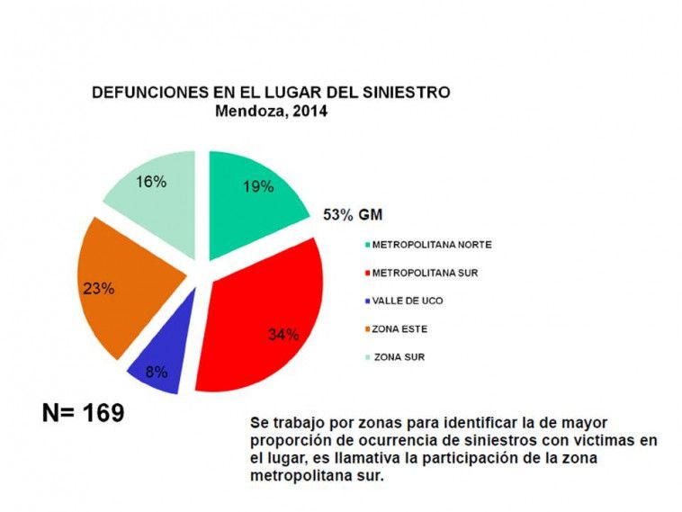 De ese total de defunciones, el 53% de los hechos se produjeron en la zona Metropolitana Sur (Godoy Cruz, Luján y Maipú) y Metropolitana Norte (Capital, Las Heras, Lavalle y Guaymallén).