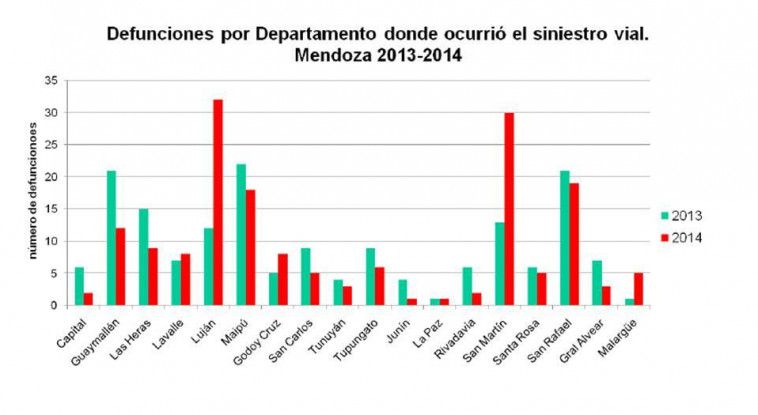 Con respecto a los muertos viales por departamento, Luján está a la cabeza en comparación con el 2013.