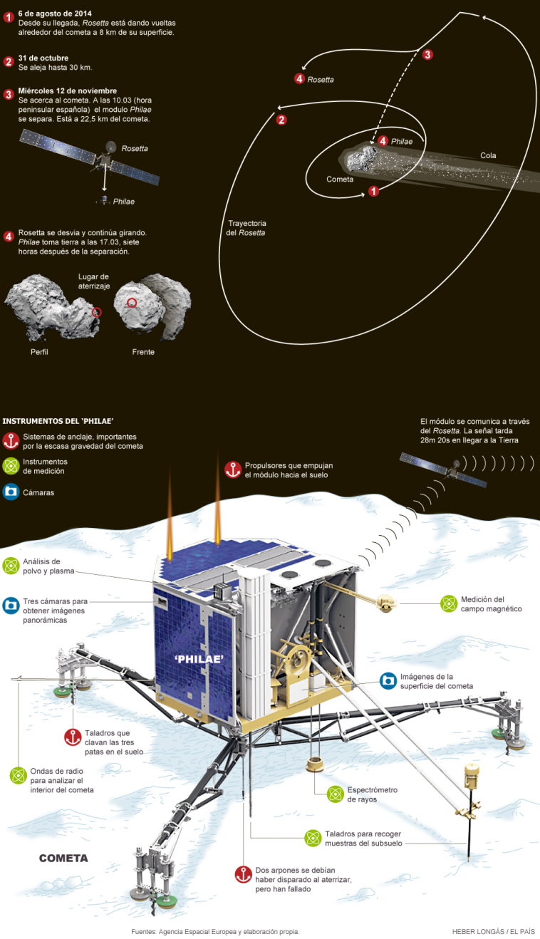 La nave Rosetta, que orbita el cometa y a través de la cual se envían las comunicaciones de Philae a la Tierra, estuvo dos semanas en otra parte del cuerpo celeste. Pero regresó al área donde debería poder comunicarse con la sonda el 11 de agosto.