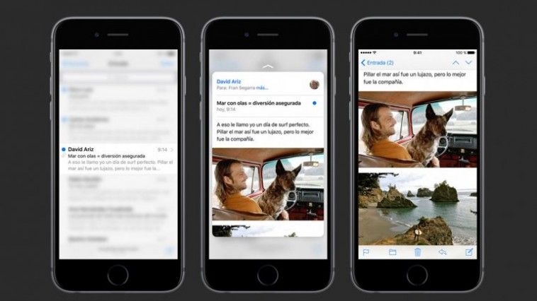 "Pongamos que haces Peek para ojear una web. Si deslizas hacia arriba aparece un menú con acciones habituales, como copiar una URL, abrir una página en una pestaña nueva o añadirla a tu Lista de Lectura. En iOS 9, allá donde aparezca una foto de perfil (Mail o Mensajes, por ejemplo), podrás presionar para ver toda la información del contacto. Cuando echas un vistazo a un email con un Peek, puedes deslizar a la derecha para borrarlo o a la izquierda para marcarlo como no leído", remarcó Apple.