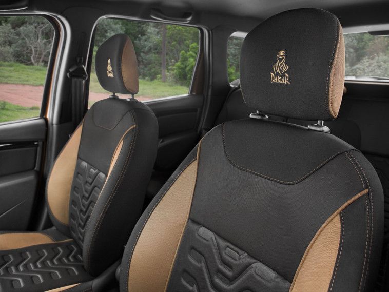 Además del clásico sistema multimedia Media Nav, sumado al confort y habitabilidad característicos, se agregan referencias estéticas en todo el habitáculo. El Logo Dakar se encuentra en los apoyacabezas delanteros y volante, los tapizados cuentan con diseño exclusivo y sobresalen los detalles de color en paneles de puerta y tablero.