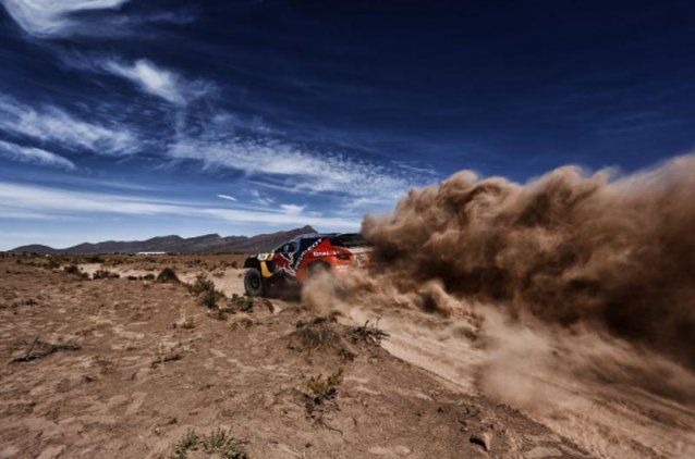 En autos, la carrera viene dominada por los Peugeot, con el francés Sebastien Loeb como líder, seguido de sus compañeros Stephane Peterhansel y Carlos Sainz, con el qatarí Nasser Al Attiyah expectante, a 17m 36s, con el MINI mejor posicionado en la general.