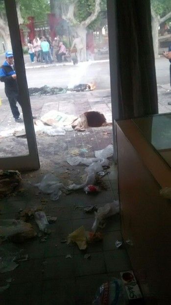 Gomas quemadas, basura tirada y prendida fuego por todos lados, y un ánimo social candente, es la escena que rodea al edificio municipal en el día de hoy.