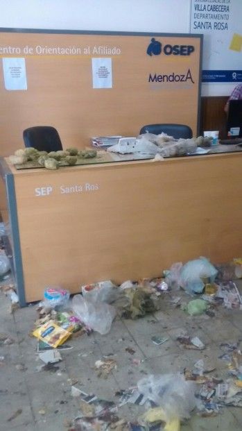 Empleados del municipio de Santa Rosa volvieron a copar el edificio comunal ante la falta del pago de sus sueldos y lo llenaron de basura.