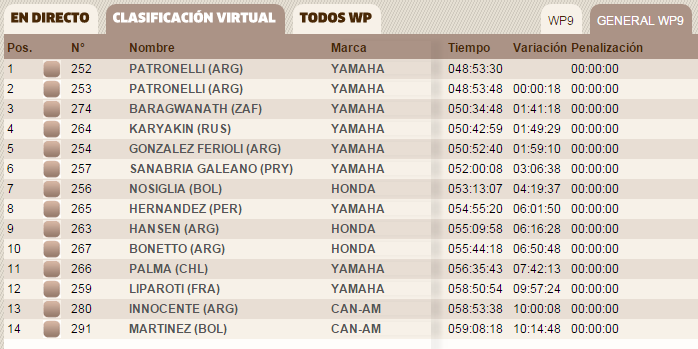De esta manera, Alejandro sigue segundo en la general, anque a sólo 18 segundos de su hermano. Lejos está en el tercer lugar Baragwanath, a 1 hora 41 minutos, mientras que González Ferioli se mantiene quinto, a casi 2 horas de Patronelli.