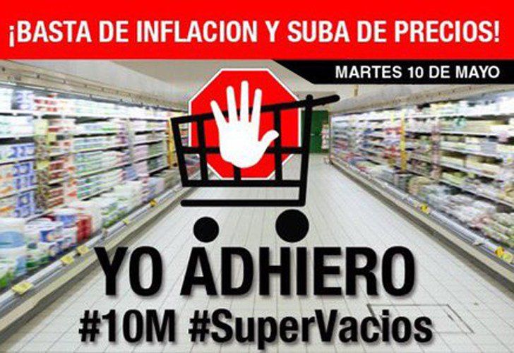 Bajo la consigna sin clientes, no hay aumentos, los organismos defensores de los derechos del consumidor, alentaron a los ciudadanos a que por hoy, 10 de mayo, no concurrieran a comprar a los supermercados.