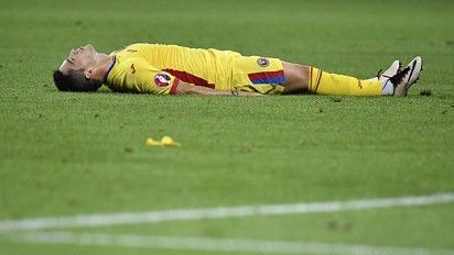 Pero a las bajas físicas que tuvo en la previa al juego, Rumanía debió sumarle la pérdida de su número "9", Denis Alibec, que cayó de forma irregular y se marchó en camilla con una dolencia en la rodilla a los 57 minutos.