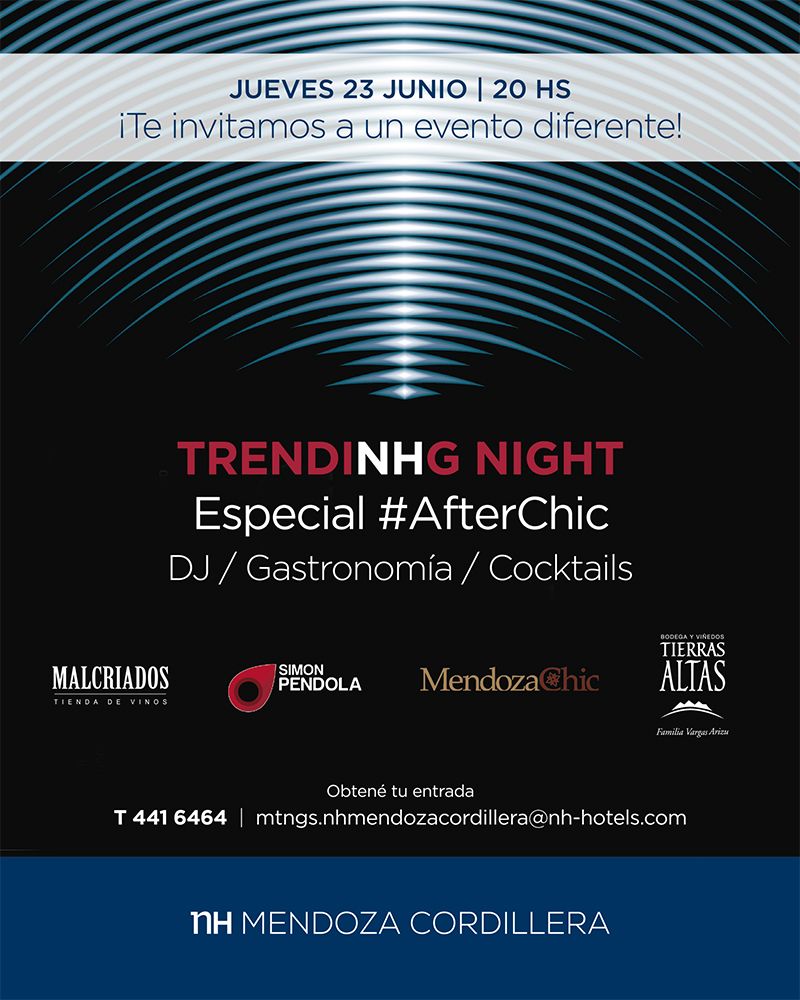 Soy Más, el suple Mujer de Sitio Andino, te invita a TrendiNHg Night, el Especial #AfterChic en el que encontrarás, en el NH Cordillera, el placer de disfrutar con tus amigos de DJ's, manjares de gastronomía y cocktails para compartir.