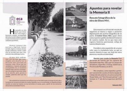 Con motivo del 1° año de reapertura del ECA Sur, en San Rafael, se realiza la Muestra Apuntes para Revelar la Memoria II, declarada de Interes Departamental por el Honorable Concejo Deliberante de San Rafael.