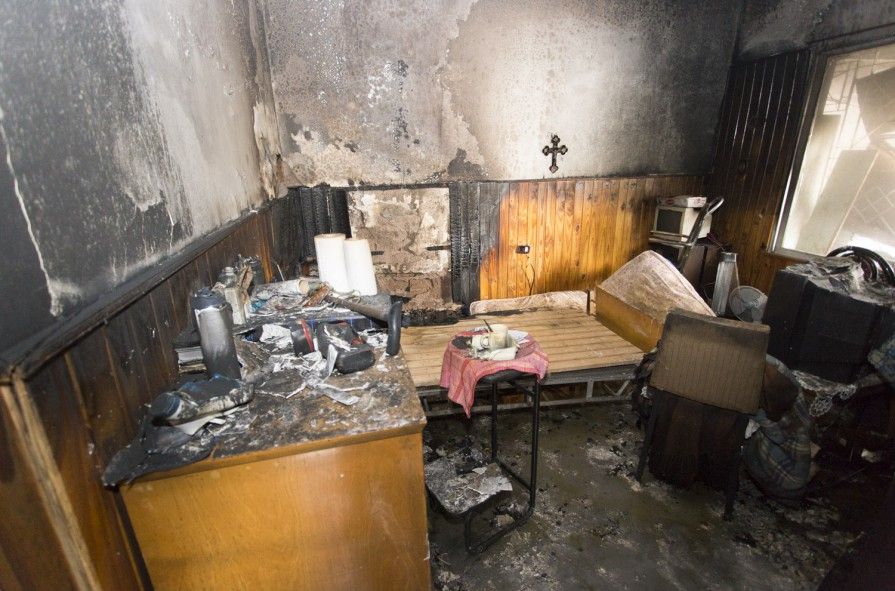 La habitación de Cali sufrió péridas totales. Los bomberos lo rescataron de este lugar.