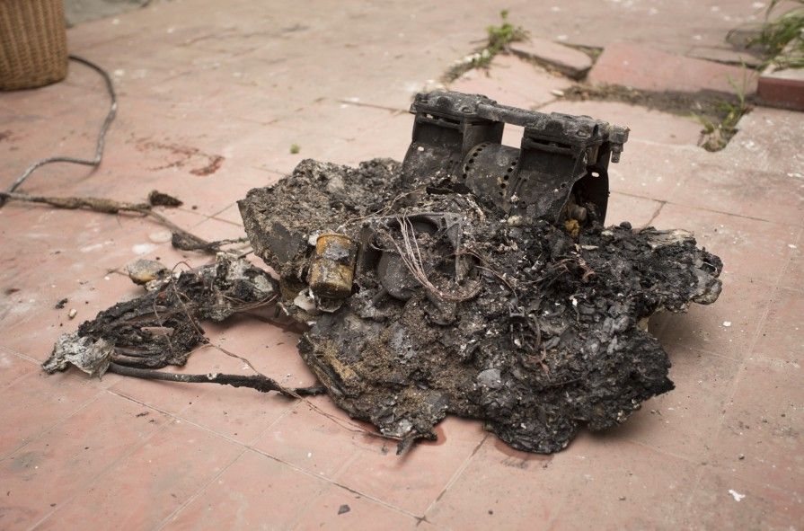 El tubo de oxígeno del que respiraba el hombre. Quedó envuelto en llamas.