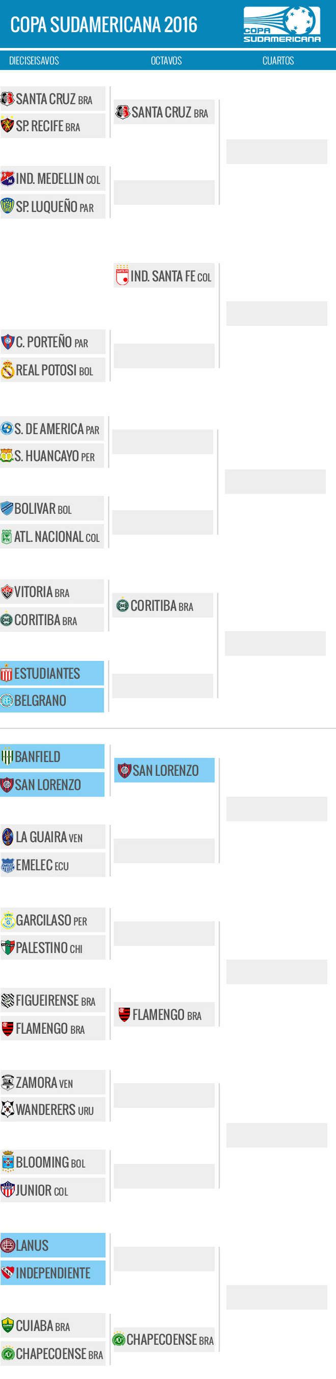 San Lorenzo ahora espera en octavos al ganador de La Guaira de Venezuela (4) - Emelec (2) de Ecuador. Y recién en semis se podría cruzar con Independiente (2) - Lanús (0), que juegan este miércoles.