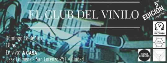 18.00 - El Club del Vinilo. 5ta edición "Primavera Psicoactiva". Venta e intercambio de vinilos y casettes. Minirecital en vivo de A Casa. En Casa Colmena. San Lorenzo 251, Ciudad.