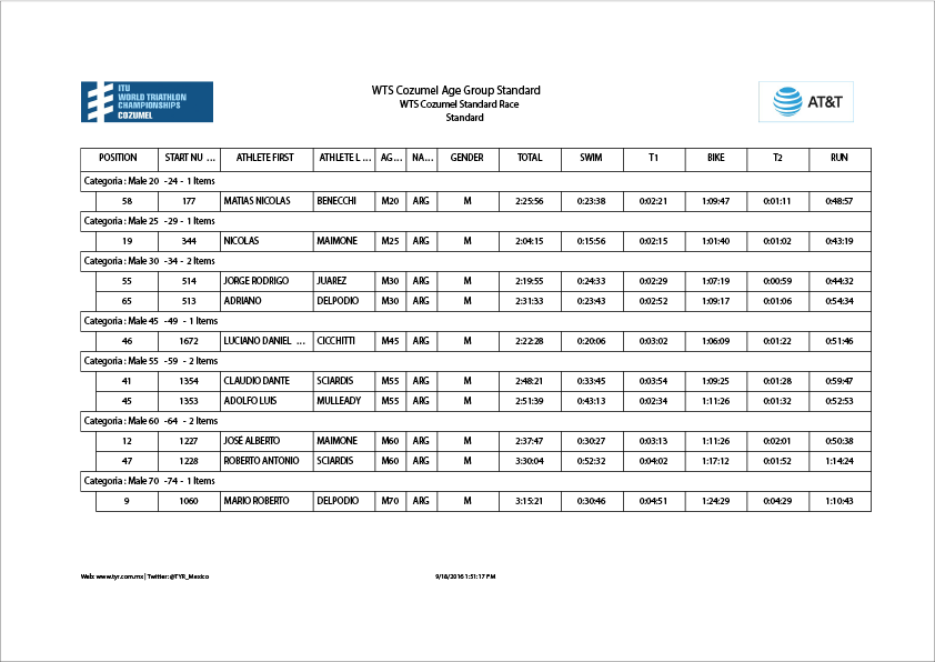El presidente de la Asociación Mendocina de Triatlón, Luciano Cicchitti, se ubicó 46 en la categoría 45 a 49 años con un tiempo de 2h 22min 28seg.