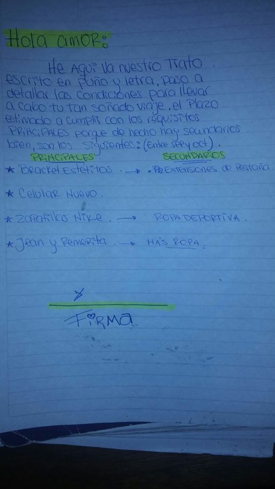 También a nuestro sitio en Facebook, Mayra (la mujer en cuestión) nos mandó el contrato firmado de puño y letra por Damián.