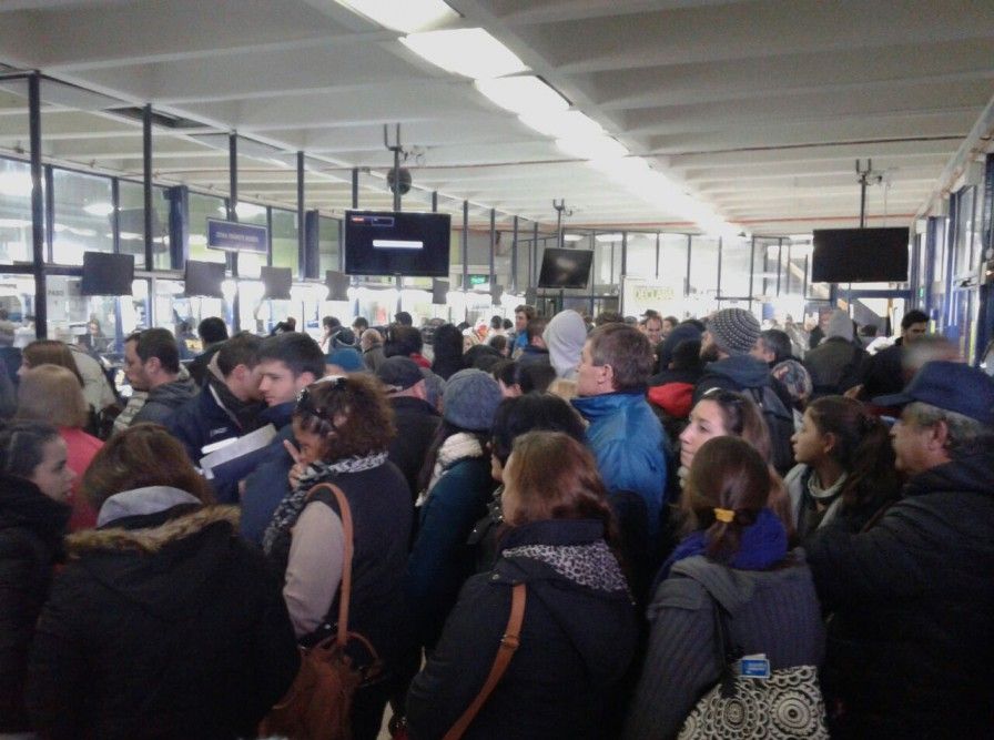 Atestados. Así se ve en horarios pico la aduana chilena. Pretenden que las cabinas estén llenas para agilizar los trámites.