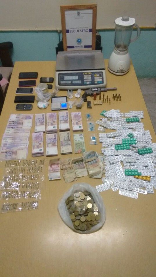 El procedimiento se llevó a cabo cuando los efectivos policiales irrumpieron de manera sorpresiva en la vivienda logrando secuestrar más de 72.000 pesos en efectivo, producto de la venta al menudeo, dos envoltorios con marihuana, dos envoltorios con cocaína, 630 semillas de marihuana, 10 plantines de marihuana de10 centímetros aproximadamente, 5 teléfonos celulares, 2 balanzas,1 licuadora, 1 revolver calibre 38, 1 cargador calibre 22, 24 proyectiles calibres 38, 22, y 9 milímetros y 93 blisters de pastillas utilizadas para corte de las sustancias, entre otros elementos aparentemente probatorios relacionados a la actividad ilegal. Un hombre de 40 años, con frondoso prontuario, quedó imputado por infringir la ley nacional de estupefacientes.