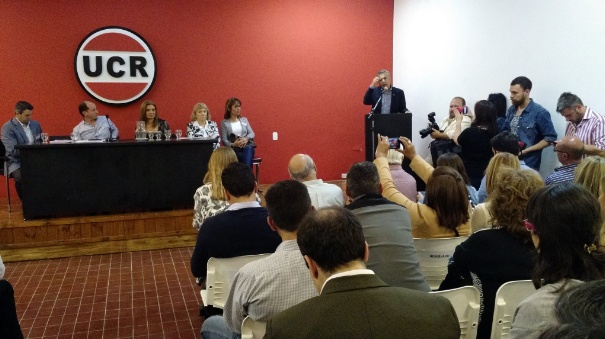 El gobernador de Mendoza, Alfredo Cornejo, junto a la vicegobernadora, Laura Montero, y el presidente de la Unión Cívica Radical, Rodolfo Suárez, encabezaron la apertura del congreso de la UCR Mendoza, que se realizó en el comité de calle Alem.