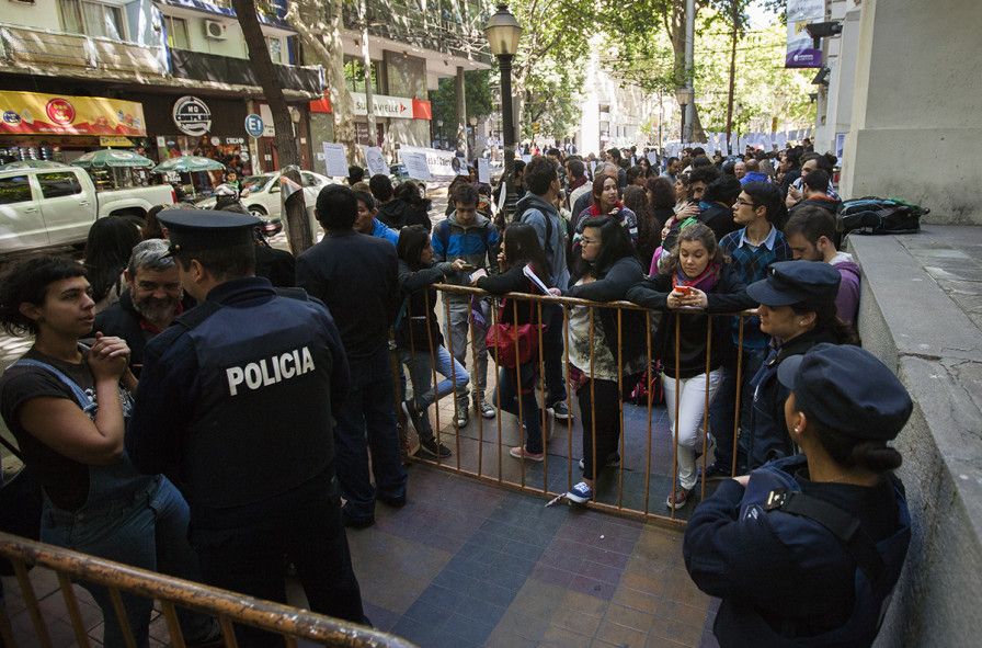 Comenzaron los murmullos y reclamos en voz baja: "Cómo van a hacer la audiencia en un lugar con tan poca capacidad, el Centro de Congresos y Exposiciones hubiese sido una mejor elección o el Bustelo", decían unos por acá mientras otros, por allá, hacían otro reclamo: "Nos hacen formar fila pero por 9 de julio entran cómodamente funcionarios y los que adhirieron a la designación de Valerio". Los comentarios se replicaban entre los presentes. Sin embargo, nadie levantó la voz, nadie empujó, nadie se quejó de las vallas ni de la fuerte presencia policial y los periodistas transmitían la tranquilidad que a muchos de ellos también sorprendió.