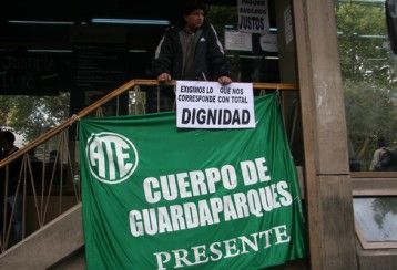 Este viernes, la Asociación de Trabajadores del Estado (ATE) protestó en la puerta del Ente Autárquico de Turismo para exigir mejoras laborales en el área donde se desempeñan los guardaparques.