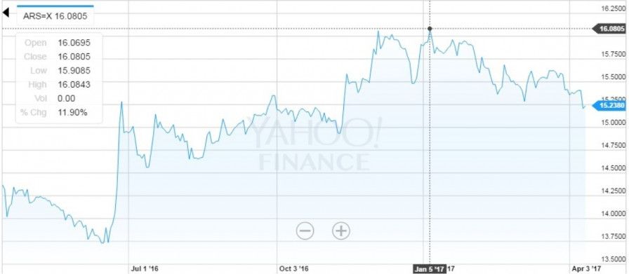 Primero analicemos qué está pasando. Desde el #EfectoTrump allá por finales de 2016, cuando el dólar se apreció fuertemente en el mundo por temor en los mercados internacional a que el nuevo presidente de Estados Unidos lleve adelante una política más proteccionista, el billete norteamericano en Argentina trepó a su nivel máximo en enero de este año cuando cotizó a $16,08. Desde entonces ha ido bajando sistemáticamente hasta alcanzar hoy una cotización de $15,23. Esto marca que entre enero y el 12 de abril, el dólar bajó un 5,3%.