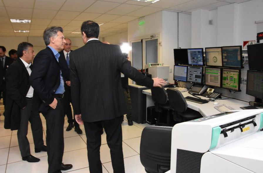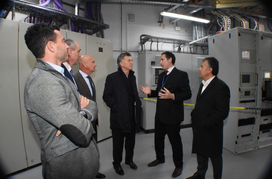 Macri arribó en helicóptero y en su visita estuvo acompañado por el gobernador Alfredo Cornejo, el intendente Jorge Vergara Martínez y Rodrigo De Loredo, Presidente de ARSAT.