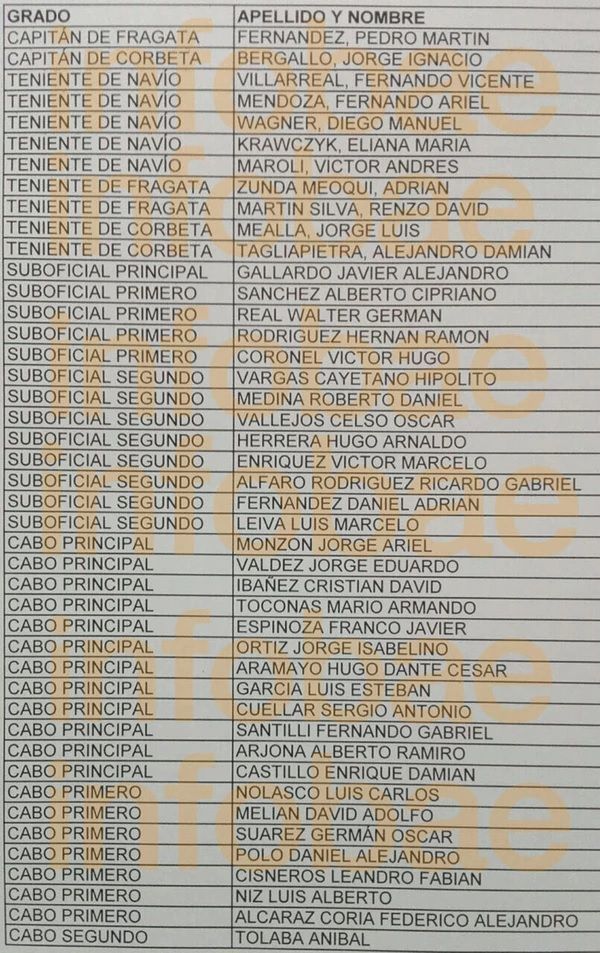La falta de la nómina había generado suspicacias y distintas versiones, teniendo en cuenta que el ARA San Juan suele ser tripulado por 38 personas y no por 44, como ocurrió en esta ocasión.