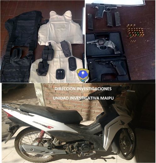 La Unidad Investigativa de Maipú allanó una casa en el barrio Malcayaes y secuestró armas de fuego, proyectiles, cargadores, un chaleco antibalas y hasta una moto que tenía pedido de captura por robo.