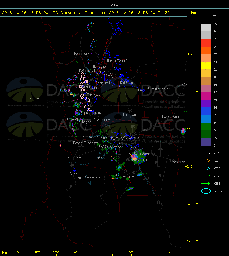 RADAR : SEVERO ECO DE TORMENTA entrando por el sur de General Alvear . con 65dbz (rojo) granizo segun radar pic.twitter.com/EWd8hxgWVL